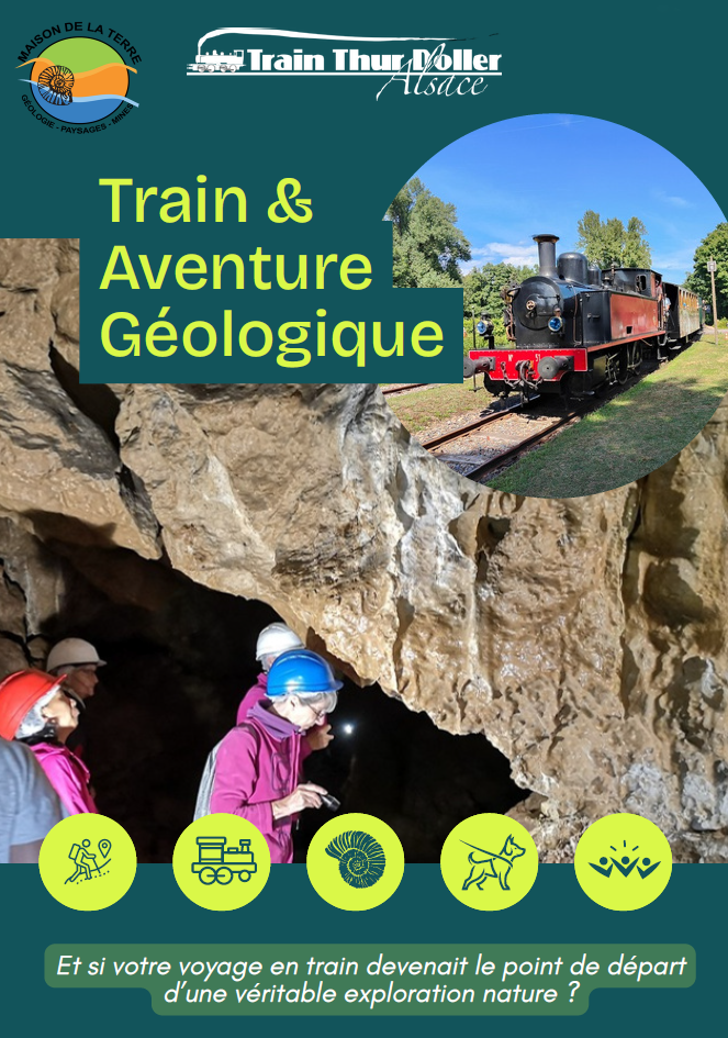 Découvrez l’expérience unique Train & Aventure Géologique, une prestation proposée par la Maison de la Terre de Haute-Alsace en partenariat avec le Train Thur Doller Alsace. Ce billet combiné allie un trajet en train historique à une immersion géologique passionnante de 3h30, encadrée par des bénévoles enthousiastes, pour explorer roches, paysages et une grotte aux loups.