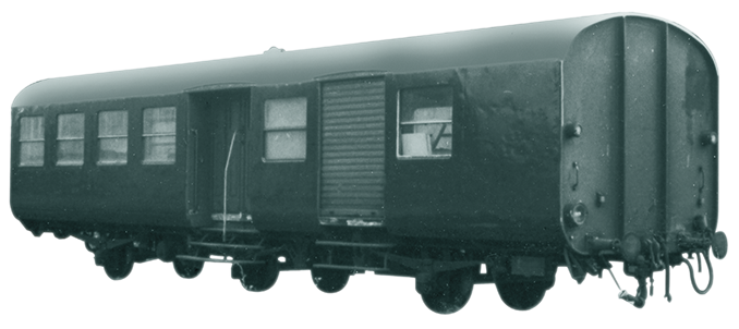 Fourgon à 2 compartiments à colis-bagages, compartiment central avec casiers à plis, siège pour l’agent transport, toilettes, chauffage vapeur et électrique, frein automatique à distributeur. Agréé SNCF