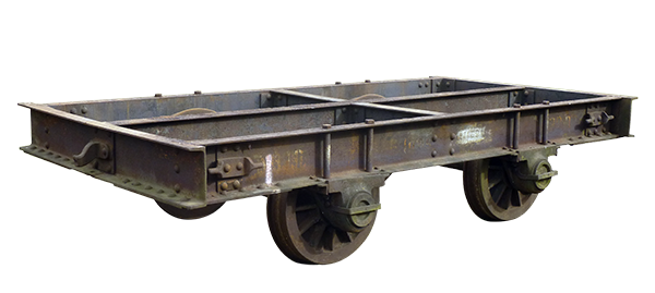 Châssis en profilés en U assemblés par rivetage, plancher en châtaignier, boîtes d’essieux à graisse sans suspension, roues en fonte.