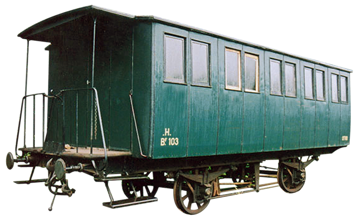 Deux essieux, structures bois, aménagé pour le transport de troupes et chevaux. Guérite pour serre-frein, compartiment à chien, frein à vis et automatique Westinghouse.