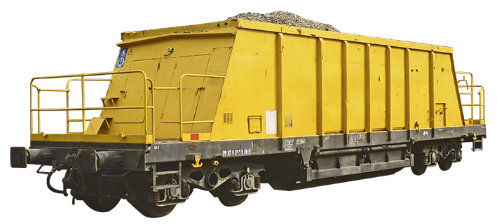 Ballastière à déchargement à commande électro-hydraulique construite sur la base d’un wagon trémie minéralier. Motorisation par moteur Deutz F 3L 912.