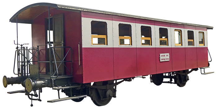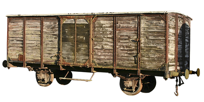 Structures métalliques, parois en bois, portes coulissantes, dépourvu de frein. Wagon dit « armistice » reçu par la France au titre des dommages de guerre 1919.