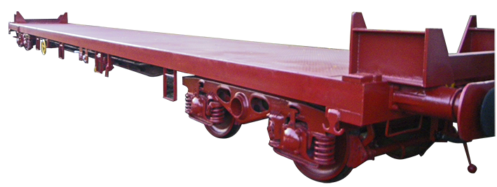 Wagon plat à bogies modifié pour un transport d’arbre de turbine chez Alsthom, pose d’un plancher par le TTDA en 2011, frein automatique à distributeur.